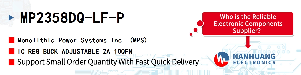 - MP2358DQ-LF-P MPS, IC REG BUCK ADJUSTABLE 2A 10QFN, Integrated Circuits (ICs)~PMIC - Voltage Regulators - DC DC Switching Regulators