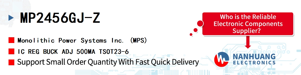 - MP2456GJ-Z MPS, IC REG BUCK ADJ 500MA TSOT23-6, Integrated Circuits (ICs)~PMIC - Voltage Regulators - DC DC Switching Regulators