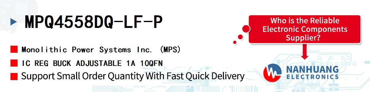 - MPQ4558DQ-LF-P MPS, IC REG BUCK ADJUSTABLE 1A 10QFN, Integrated Circuits (ICs)~PMIC - Voltage Regulators - DC DC Switching Regulators